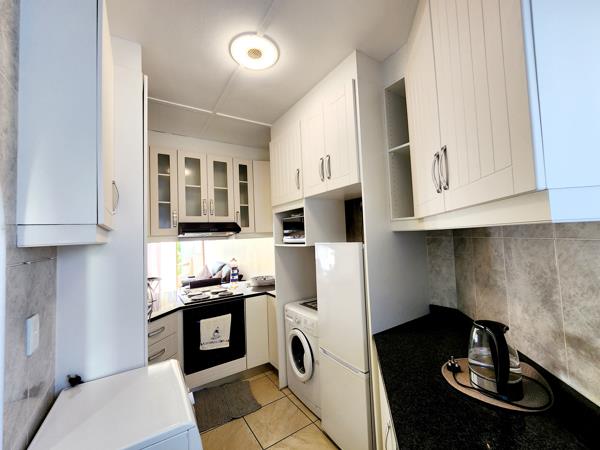 Enjoy the comfort of a spacious, air-conditioned open-plan lounge. The kitchen features stunning granite countertops and plenty of cupboard space, meticulously designed for optimal functionality. Dining area for a quick brekkie in the morning. Spacious open-plan dining and lounge areas, lead out to a small balcony.
