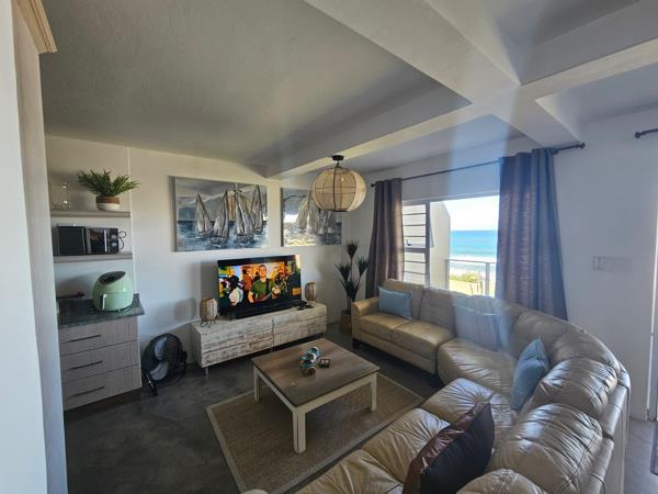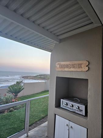 Situated in a secure beachfront complex with direct access to Uvongo main beach, this upmarket apartment boasts spectacular sea and breaker views. The unit comprises an open plan living area and kitchen, Three bedrooms and two bathrooms, with the main being en-suite. The living area and main bedroom lead onto a spacious, partially covered balcony overlooking the ocean where you can sit and enjoy your morning coffee or sundowners and watch the dolphins passing by.