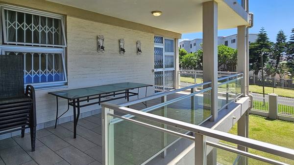 In a popular complex in Uvongo right across the ocean and walking distance to the Uvongo Pier, you will find this absolutely gorgeous apartment up for grabs. This apartment is very well maintained with beautiful furniture and appliances included. Perfect for permanent stay or very popular for holiday rentals. As you enter the apartment, you are greeted with a stunning kitchen, well designed with granite tops and lots of cupboard space, as well as a breakfast nook. The kitchen is open-plan with the lounge/ dining room area that opens to a large balcony which has the most beautiful sea views, opening up to the double-sized patio. As you enter the front door, you immediately become aware of the ocean straight ahead of you. See the sea, smell the sea, hear the sea....almost touch the sea.