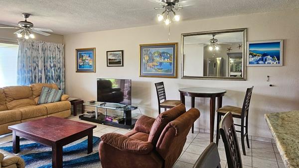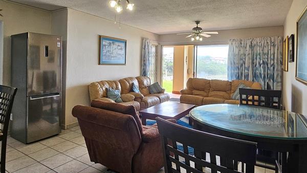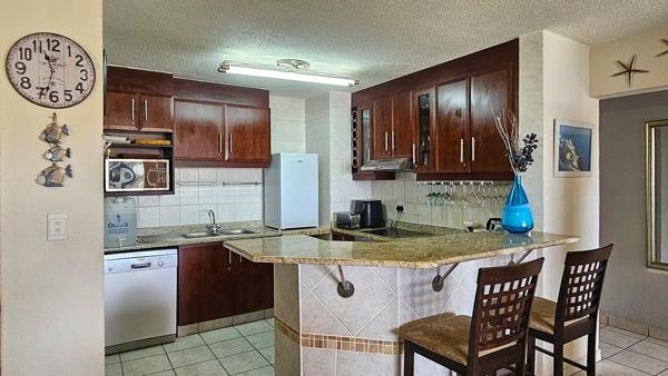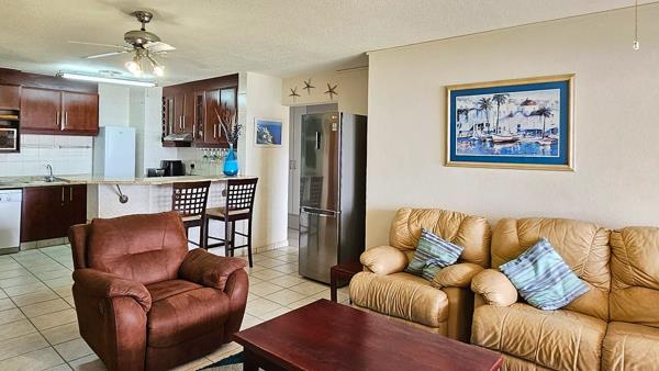 The JACKPOT!!!! This is IT!!! This apartment is pristine and in tip top, supreme condition. From the moment you enter the apartment, one is aware of the luxury, light and the beach. The kitchen is modern with lots of cupboard space and lovely granite counter tops with an elevated granite dining nook. The easy flow leads you through the open plan / lounge area to the inviting double patio with exquisite sea views. Beach... Ocean... RIGHT ON YOUR DOORSTEP!!!!! Once you open the sliding door to the patio, you invite the whole of the ocean right into your home. The whole of Uvongo''s beach lies there for you to admire. The furniture is elegant and beautiful AND included in the sale. Quality furniture both inside and on the patio. Light and airy the open plan dining room/lounge is spacious and tranquil. welcoming you to having a most wonderous time here.