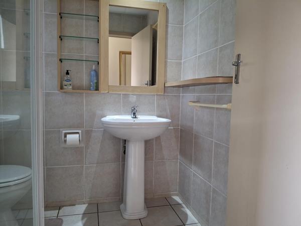 The bedroom is spacious, has built in cupboards. The family bathroom consists of a shower, basin and toilet.