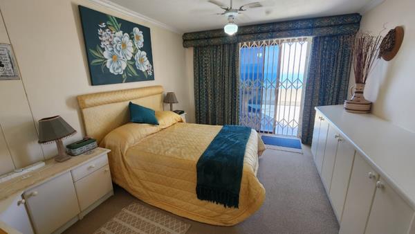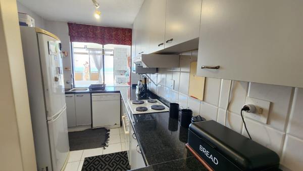 The apartment features an open-plan design that seamlessly integrates the kitchen, lounge, and dining areas, creating a spacious and inviting living space. The well-positioned kitchen boasts beautiful granite countertops, ample cupboard space, and stunning sea views. A window opening to the balcony enhances the kitchens functionality, making it perfect for entertaining guests.