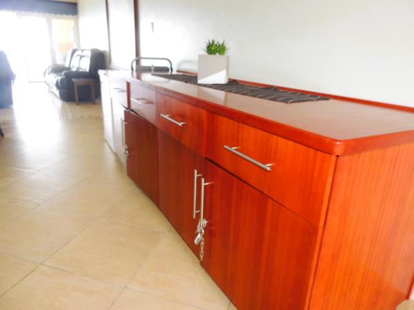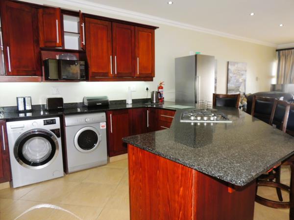 Designed with elegance and functionality in mind, the apartment features a spacious open-plan kitchen, crafted from solid wood with granite countertops and a generous breakfast nook. The adjoining lounge seamlessly extends through large stacker doors onto a vast undercover balcony, equipped with both a built-in gas braai and a fire braaiperfect for outdoor entertaining. The breathtaking sea views from the balcony are truly unparalleled.