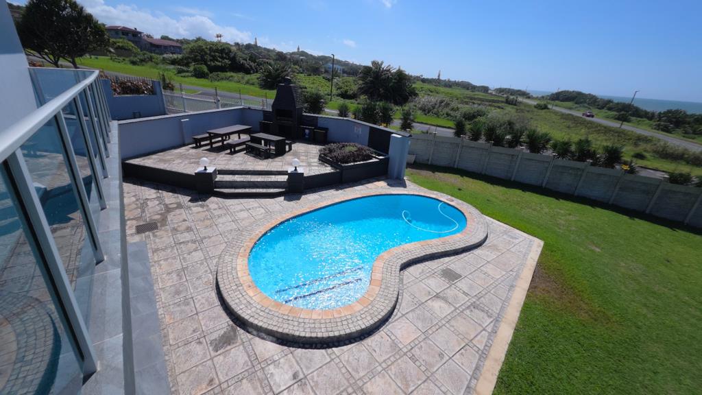 Designed for entertaining, this home features a stylish upstairs bar area that opens to a balcony with breathtaking ocean views, as well as a second entertainment space downstairs with its own entrance. Outside, the sparkling pool and braai area provide the perfect spot to unwind to the sound of waves crashing nearby. The property is nearly off the grid, with solar power and water tanks, making it both efficient and eco-friendly. Theres also plenty of parking, a double automated garage, and an additional living space currently used as the managers quartersideal for a granny flat or extra guest accommodation. Whether you''re looking for a dream coastal home or an investment opportunity, this stunning property has it all!