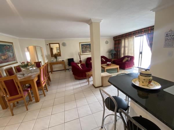 On offer today, is this well proportioned apartment of 169 m2 offering loads of space with a huge balcony that includes a partially closed braai section for those blustery days experienced at times.