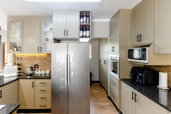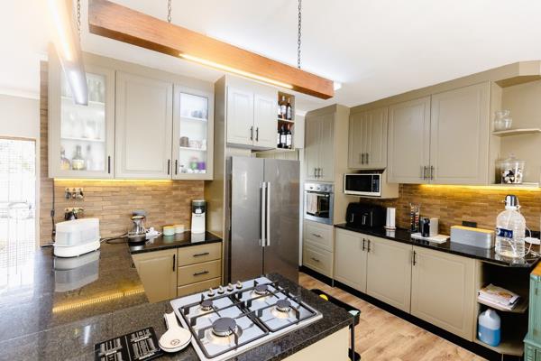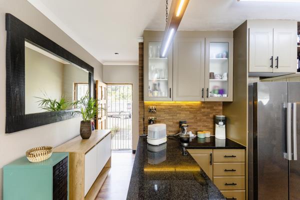 This lovely three-bedroom townhouse is modern and homely. Open-plan living area that leads to the back yard. The kitchen is lovely, featuring granite countertops, a gas hob, an eye-level oven, and a breakfast nook as well as a scullery.