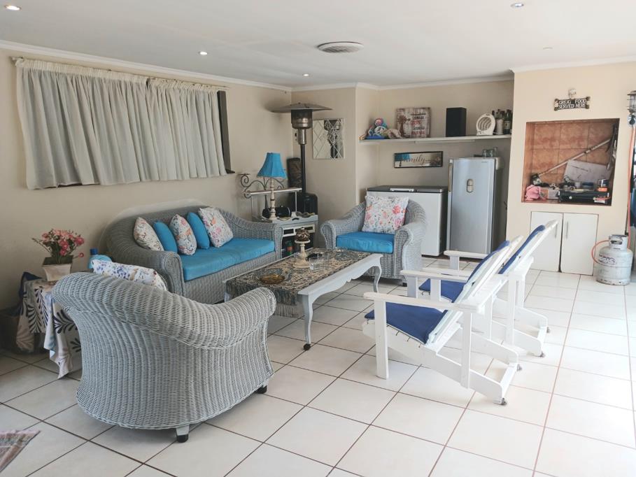This home has seen a family raised and many memories accumulated, now it''s your turn. Step into this charming and comfortable home where the open plan living and dining area flows effortlessly into a modern kitchen, complete with a gas stove and granite counter tops. Large windows invite in an abundance of natural light, creating a warm and welcoming ambiance. The living area opens onto an enclosed sunroom that offers breathtaking ocean views, the perfect spot to unwind or entertain guests. At the back, a second enclosed braai area leads out to a sparkling swimming pool and jacuzzi, making this an entertainer''s dream.