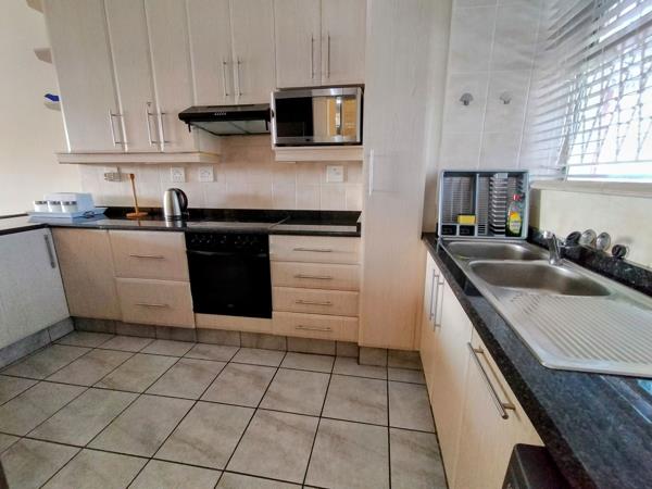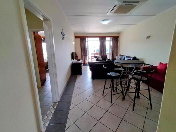 The apartment features a light-filled open-plan living space that flows out to a private balcony the perfect spot for your morning coffee or evening sundowners. The kitchen is fully equipped and ready to use, and both bedrooms are comfortably furnished.