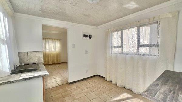 The unit features an aluminium sliding door that opens into a bright lounge area, a newly fitted kitchen with fresh cupboards, a comfortable bedroom, and a bathroom with a modern shower, toilet, and basin. New aluminium windows have also been installed, giving the space a clean, updated finish.