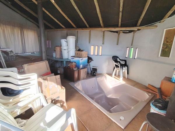 Take a walk through this gorgeous property. When entering the gate the two single garages are in front of you with two additional single boat / caravan garages to the left - with ample open parking. The entrance to the flat is to your left when walking to the pool. Let''s start by the entrance first. Through the front door the lounge with laminated flooring is to the left with a corridor / entrance hall leading to the built in bar / entertainment area and that is interleading to the dining room. Moving back to the lounge, the dining room is to the right with a gorgeous chandeleer. The kitchen is through an arch and this kitchen is a Chef''s dream, a lot of cupboard space. Let''s explore upstairs first. With eighteen steps or the chair lift to the top of the stairs, to the right is the second lounge with an enclosed balcony - that overlooks the pool area. Moving back to the entrance hall at the top of the stairs, the main bedroom is to the left. This room is fit for a queen and king, fitted with carpet and a gorgeous full bathroom with pillars and steps into the bath. The under cover balcony is overlooking the pool. The second and third bedrooms are interleading and overlooking the back garden. Moving downstairs again to the corridor. The pantry / linen cupboard is to your left and the fourth bedroom is to the left overlooking the pool. The fifth bedroom is to the right - overlooking the back garden. The full family bathroom is to the right and a separate toilet. At the end of the corridor the sixth bedroom is to the left with sliding doors overlooking the pool, then down two steps the open plan lounge / dining room with a fitted kitchen surprises you. The wooden steps leads your eye upwards to the loft - overlooking the lounge / dining room area of the flat. Walking past the kitchen down the flat''s corridor, the full bathroom with separate toilet is to the left and at the end of the corridor is the laullery (scullery and laundry combined) with a back door to the outside laundry and outside toilet. The garden offers fruit trees. The property is fully walled with electrical fencing, generator and solar panels on the roof. The jacuzzi and built in braai at the massive sparkling pool will keep the whole family busy during summer days.