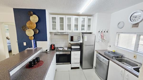 The interior is thoughtfully designed, featuring two beautifully laid out bedrooms, a share bathroom, a bright and airy lounge area and a sleek, fully equipped kitchen with roomy breakfast nook for those lazy Saturday morning family breakfasts. Modern finishes throughout enhance comfort and style, while the tasteful furnishings reflect the relaxed charm of coastal living. Move-in ready, this apartment invites you to settle in and start enjoying the peace and tranquillity from day one. All of the residents benefit from an array of resort-style amenities, including tennis courts, braai facilities, picnic areas, a communal outdoor braai areas as well as generous outdoor seatingperfect for entertaining or unwinding in the sun.