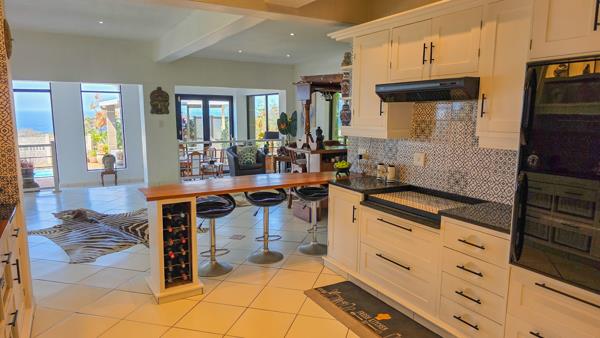 The living areas are designed for both comfort and entertaining. The open plan lounge, dining area, bar, and enclosed patio are spacious and filled with light, all opening out to the pool and entertainment area with panoramic ocean views. Practical features add to the appeal. 9 solar panels and an inverter keep the lights on, while 2 water tanks ensure a constant water supply. A double garage with direct entry into the home provides secure convenience.