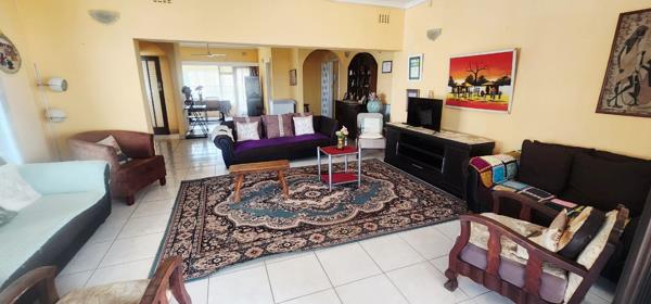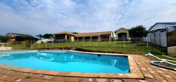 Boasting a lovely ocean view and set in a serene area of Uvongo, a short drive to Shelly Beach Malls, the local supermarket just down the road and the magical Uvongo Beach. The home is on a large portion of land with plenty of lawned areas flowing down to the large fenced swimming pool. The main home consists of 4 bedrooms (2 ensuite bathrooms) plus a family bathroom. The one ensuite bedroom has a separate entrance off the large covered entertainment patio with a built-in braai and lovely ocean view. The living area is open plan and consists of a large lounge and dining area (plenty of space for a home office) and these flow to the enclosed patio (sunroom) The kitchen is separate and has plenty of cupboard and counter space.
