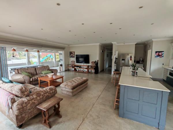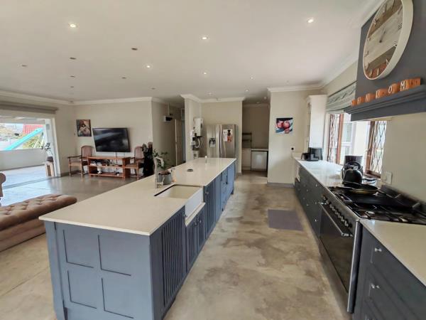 The heart of this home is a breathtaking open-plan living space, where polished screed floors and designer lighting create an atmosphere of sophisticated calm. Here, the gourmet kitchen, dining area, and lounge merge into one magnificent social hub. A grand central island with a prep bowl invites casual meals and conversation, while the adjoining scullery and laundry discreetly handle the practicalities. When it''s time to entertain, slide away the expansive stacking doors to unite the interior with a covered patio, complete with a built-in braai. Overlook the sparkling pool and private garden as you create unforgettable memories with family and friends.