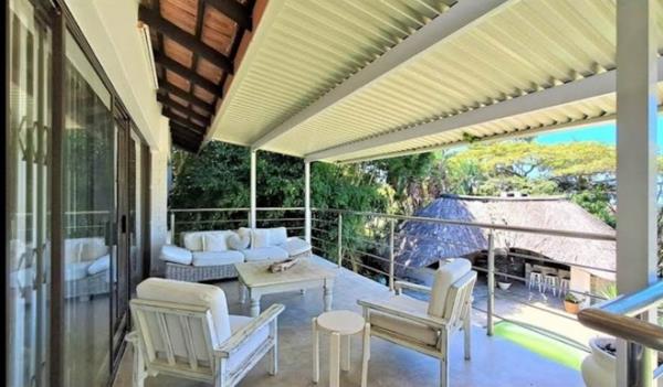 From the living room, step out onto a large balcony that overlooks the swimming pool, lapa area, and the sparkling ocean the perfect space for relaxing or entertaining.