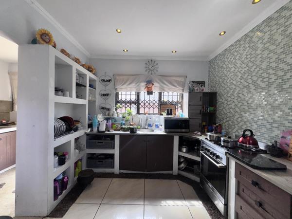 The outdoor area offers everything you need for coastal living a swimming pool, a built-in braai area under a covered patio, and ample space for gatherings.