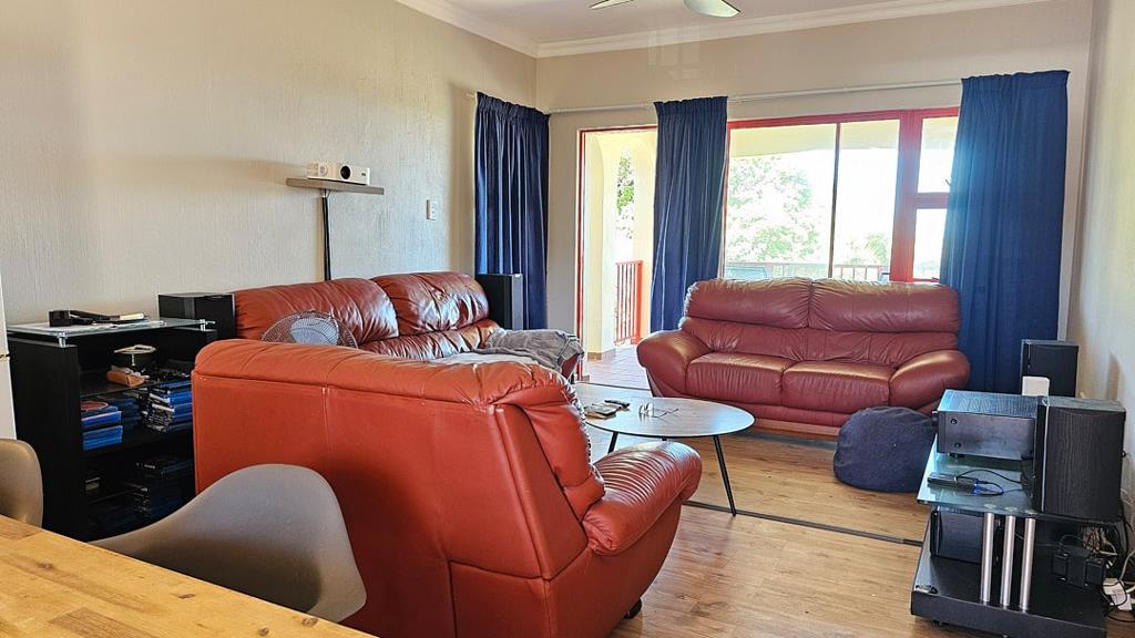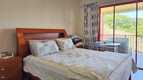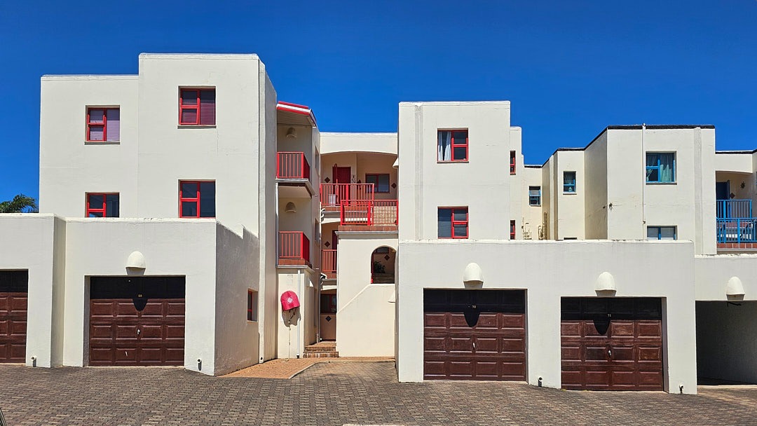 All 3 bedrooms are SPACIOUS with the main bedroom en- suite to a full bathroom. Lots of cupboard space indeed. The main bedroom also opens to a patio where one can relax and invite nature and the ocean right into your home. The 2nd and 3rd bedrooms share the second bathroom with a bath. One bedroom opens to it''s own undercover patio, private and a huge plus point. When we experience those hot, humid days, you can leave the door open to allow the ocean breeze to dance through your home. Even when you sleep, as it is safe. The complex is secure and extremely well managed. There is a beautiful sparkling , communal pool and a lovely braai area under tall, beautiful trees and a play area for the children. This apartment comes with a lock up garage and there are enough visitor''s parking. Please look at the video. Give me a call........