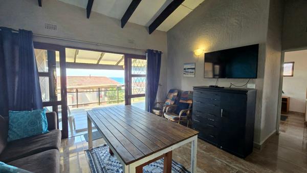 The open-plan kitchen and living area create a welcoming space perfect for modern living. The kitchen features tiled floors and a fitted stove, seamlessly connecting to the bright, airy living room with high ceilings and sliding doors that open to a private patio ideal for relaxing or entertaining in style.