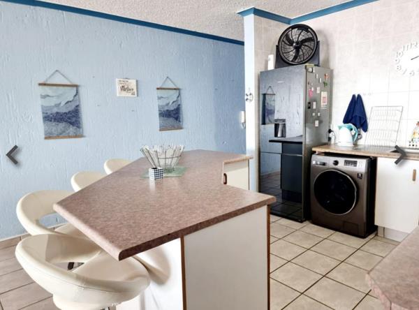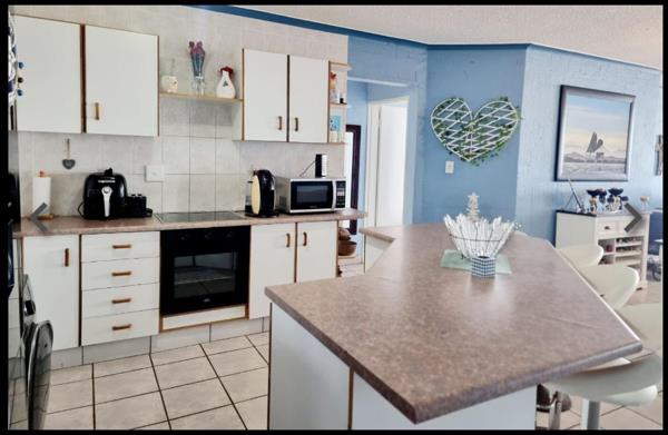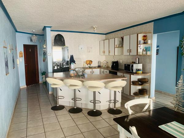 The open-plan kitchen features a cozy breakfast nook and seamlessly connects to the airy dining and lounge areas, creating an inviting space for both relaxation and entertaining. Step outside to the balcony to savor the sparkling ocean views, a perfect spot to unwind with the gentle sea breeze on your skin. Enjoy al fresco dining with a braai, enveloped by the beauty of your surroundings.