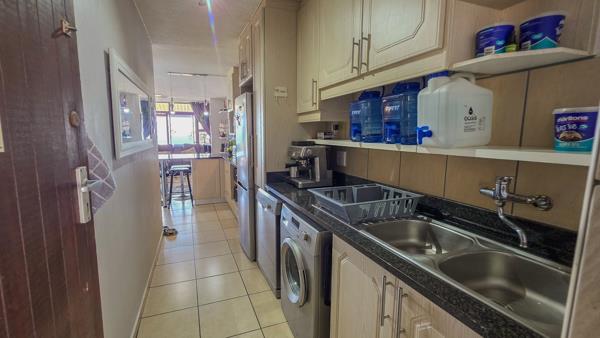 Sliding doors lead to a spacious patio with a patio set. You get fresh air, natural light, and a direct view of the changing sky. The second bedroom includes an ensuite, which supports privacy for visiting family or friends. The main bedroom feels like a quiet retreat. It has a full ensuite, generous cupboards, and access to an enclosed section of the patio that works well as a home office or a small outdoor lounge. The layout is neat and low maintenance. A tandem carport is allocated to the unit. The complex includes a backup water supply. You are close to Lucian Beach and nearby shops, which gives you easy access to daily needs and leisure spots.