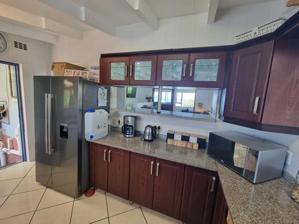 Nestled in a serene setting, this freestanding 3-bedroom home offers comfortable living with thoughtful features for everyday enjoyment. The layout is well-proportioned, with three inviting bedrooms and two and a half pristine bathrooms, ensuring ample space for family life and guest visits. The interiors flow seamlessly, with bright natural light enhancing the warm, welcoming atmosphere throughout the home. Step outside to your private paradise. A large, sparkling pool gleams at the center of the outdoor space, capped with a custom pool cover that adds both safety and convenience. Adjacent to the pool, a deck provides the perfect vantage point to soak in the stunning sea views that frame the property, making every day feel like a vacation. The outdoor area also includes a charming lapa and a lush, well-maintained garden, ideal for entertaining, al fresco dining, or simply relaxing in a tranquil setting.