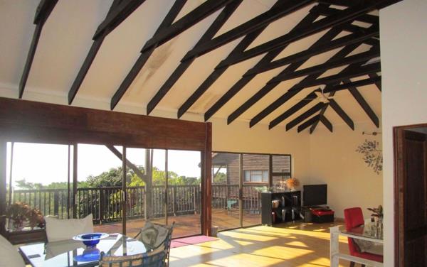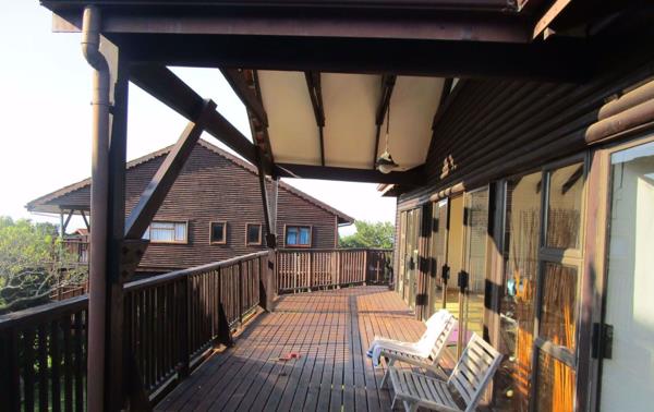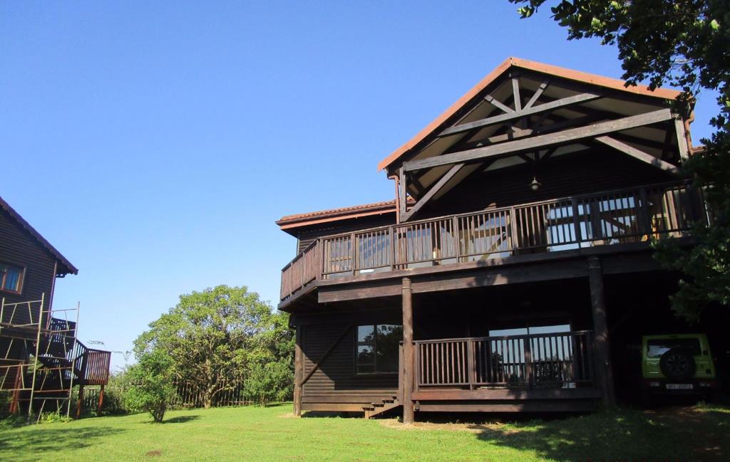 Double storey Wooden House with spacious open plan living areas.. SOLE MANDATE. This beautiful Wooden House is Pet friendly and set in an Eco-Estate, situated in the quiet and peaceful area of Bazley, an 11-minute drive from Scottburgh. Occupying two levels, this home offers ample space for both indoor and outdoor living for the entire family.
