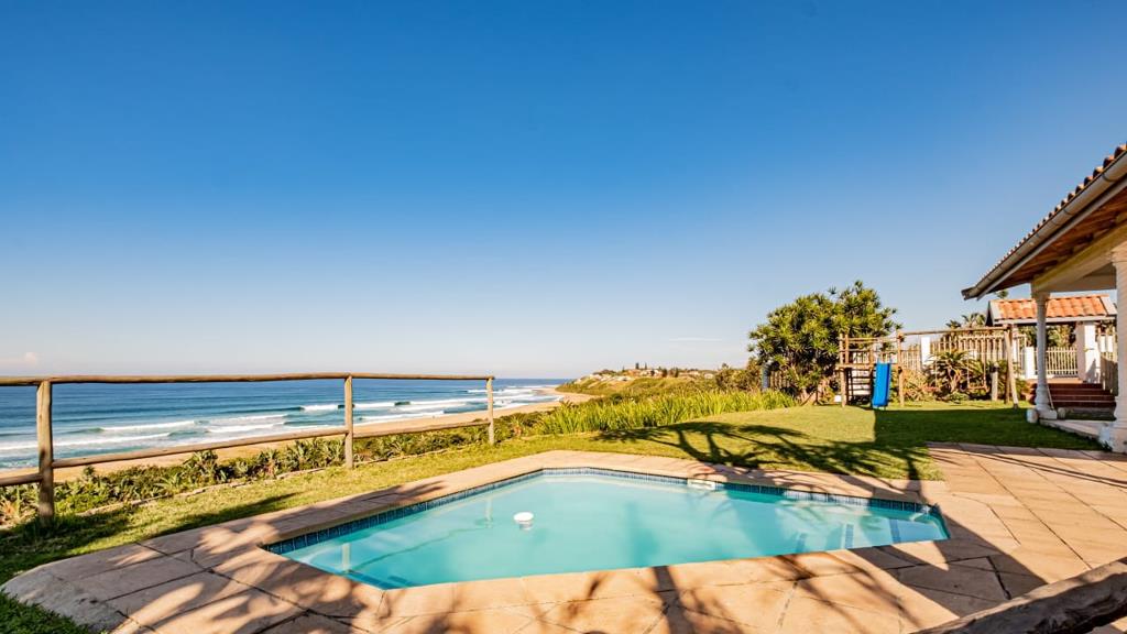 Discover an exceptional coastal retreat in the desirable Bazley Beach, Elysium, South Africa. This expansive property, set on a generous 3014 sqm erf, offers breathtaking panoramic sea views and direct access to the beach, making it an ideal holiday home or a permanent residence for those seeking a tranquil seaside lifestyle. The multi-structure layout, including a main residence and a separate flatlet or garden cottage, provides unparalleled versatility for multi-generational living or significant rental income potential.