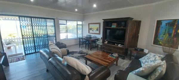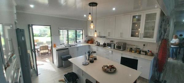 Beyond the interiors, a sparkling swimming pool invites relaxation, while the covered patio and outdoor concrete picnic area offer idyllic spaces for leisure and enjoyment. With two dedicated parking bays and a generous 1361 sqm erf, this property is designed for effortless living and entertaining.