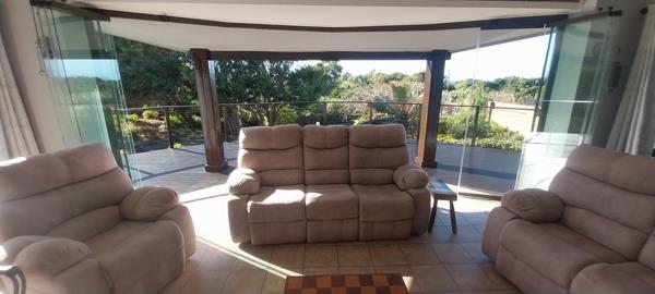 Discover this inviting 3-bedroom, 3-bathroom residence nestled in the coastal suburb of Elysium, offering a blend of comfort and scenic beauty. This modern single-story home, spanning 288.00 sqm on a generous 1293.00 sqm erf, presents a light grey exterior with a well-maintained tiled roof, creating an appealing first impression. An attached double garage and a concrete driveway provide convenient parking and access.
