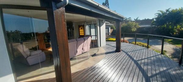 The interior features a thoughtfully designed layout, including a spacious lounge, a dedicated dining room, and an additional family TV room, ensuring ample space for relaxation and entertainment. The well-appointed kitchen caters to daily needs. Large glass sliding doors facilitate a seamless indoor-outdoor flow, bathing the living areas in natural light and connecting them directly to the expansive wooden deck.