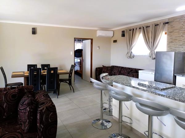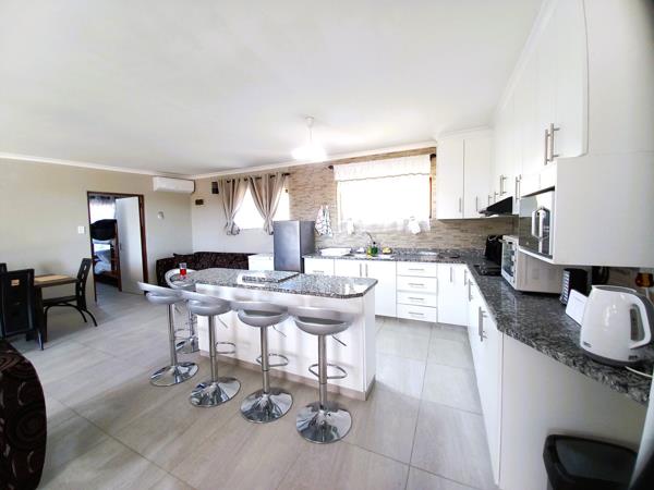 The home offers 3 well sized bedrooms, 2 bathrooms one of which is en-suite and a spacious open plan living area flowing onto a covered patio with a built-in braai. The modern kitchen has granite tops and a large breakfast bar, plus everything you would need to produce scrumptious meals. Ample parking for you and your guests.