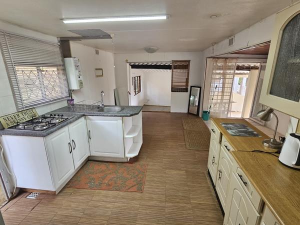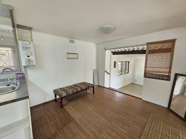 Presenting a residential sale opportunity within a secure complex in the coastal locale of Mtwalume, South Africa. This furnished three-bedroom, one-bathroom residence offers a functional layout ideal for a holiday home. The property exhibits a distinctive kerb appeal with a paved forecourt, a covered front porch, and a landscaped garden bed, hinting at its established character. An integrated covered carport provides convenient parking, while the surrounding lush natural environment contributes to a tranquil setting. Upon entry, the interior reveals an open-plan configuration encompassing the lounge, kitchen, and dining areas, designed for practical living. The space benefits from ample natural light streaming through multiple windows, complemented by rustic wooden ceilings and durable tiled flooring. While the aesthetic presents a dated charm, the property is offered furnished, providing immediate occupancy or rental potential. The kitchen is functional, supporting the home''s self-catering capabilities.