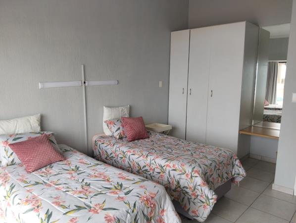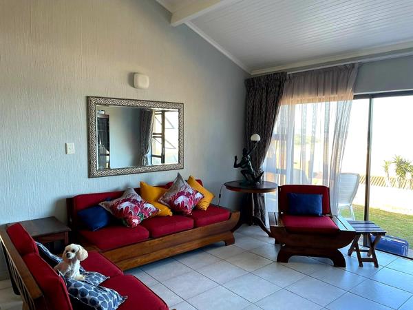There are 3 bedrooms, all with built-in cupboards, two with sliding doors opening onto the patio, perfect for ones morning coffee. The lounge is open-plan to the kitchen which has ample cupboards, a fitted oven and hob and also a breakfast bar. The floors throughout the unit are tiled.