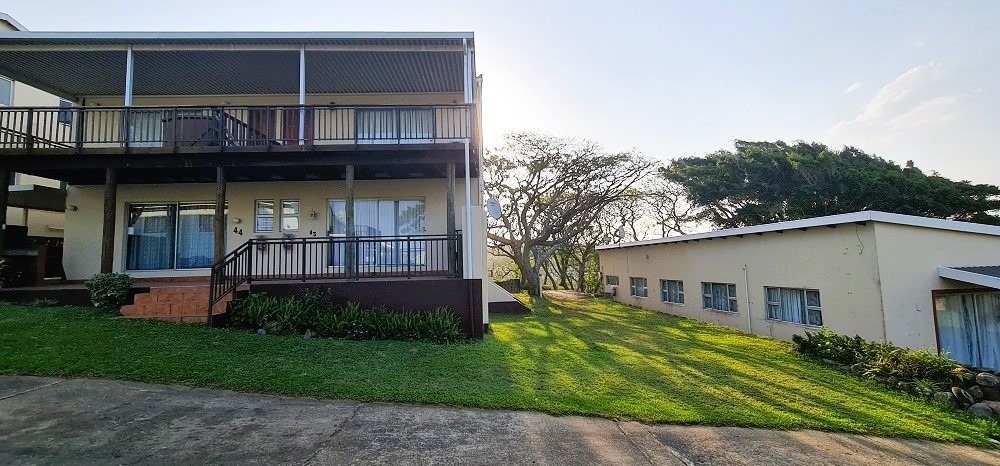 Neat as a pin ! Perfect for holiday accommodation and or permanent living. Charming double story unit with distant sea views from the deck in a meticulously kept complex offering a sparkling communal pool, childrens play park, beautiful camping area, neat ablution block, lovely gardens, communal laundromat, office, security, electric fence and a doggie park. The complex is walking distance from the very popular Mtwalume main beach with its large tidal pool for ultimate fun in the sun. The bottom area of the unit boasts guest toilet, spacious open plan lounge, dining room and kitchen with granite tops and ample cupboards, leading through sliding doors to a spacious veranda. Upstairs, the large bathroom (bath, shower, basin and toilet) and two bedrooms offer comfort and tranquility. The main bedroom leads to a large deck, treating you to lovely inland and distant sea views. The unit also comes with an inverter and large Jojo tank for total peace of mind as the complex itself has a borehole as well as back up water tanks. Step outside onto the deck, where you can relax with a morning coffee or a sundowner as the sun sets over the ocean.