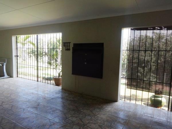 The house is trellidoored, burglar guarded and fully alarmed. The house is electric fenced and with an automated gate and the property is fully fenced.