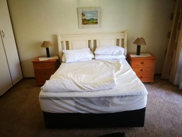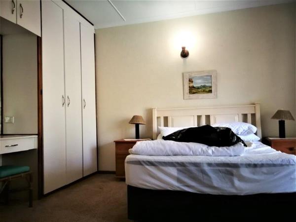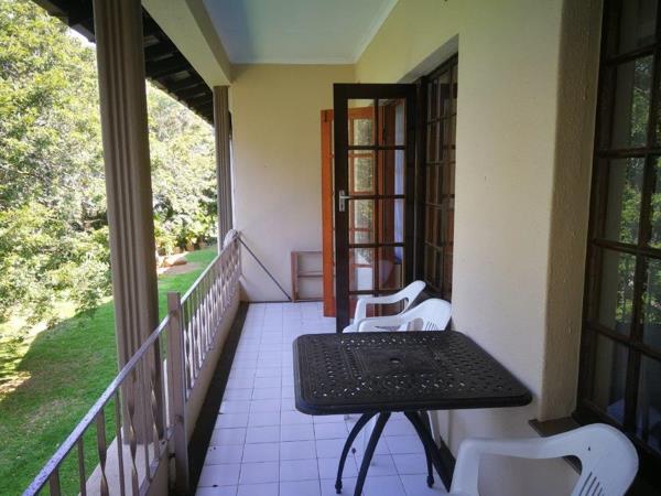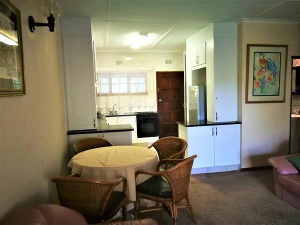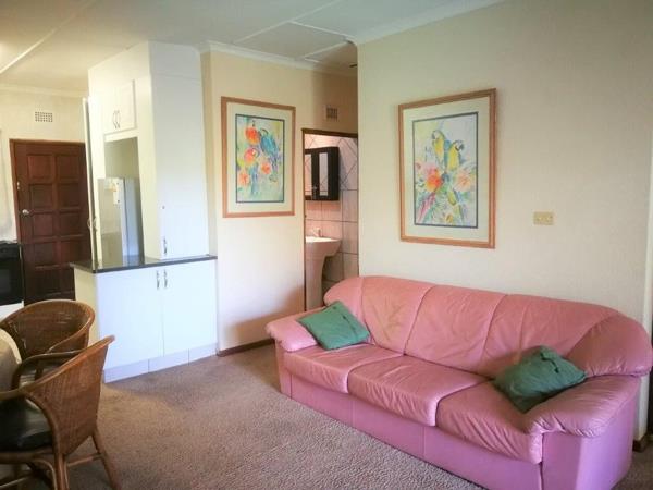 The living area opens onto a spacious Balcony, perfect for braais. This unit has an amazing view. Both bedrooms are carpeted. The Large main bedroom has built in cupboards with double doors also opening onto the balcony, both have ceiling fans. The unit is furnished, and the furniture is negotiable.