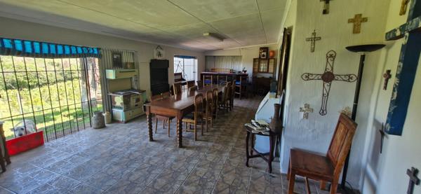 There are five bedrooms, three bathrooms, open plan living area with indoor entertainment area, kitchen and scullery. A separate income generating cottage and four locker garages. A strong borehole, water tanks plus a solar and inverter system. This also a small dam.