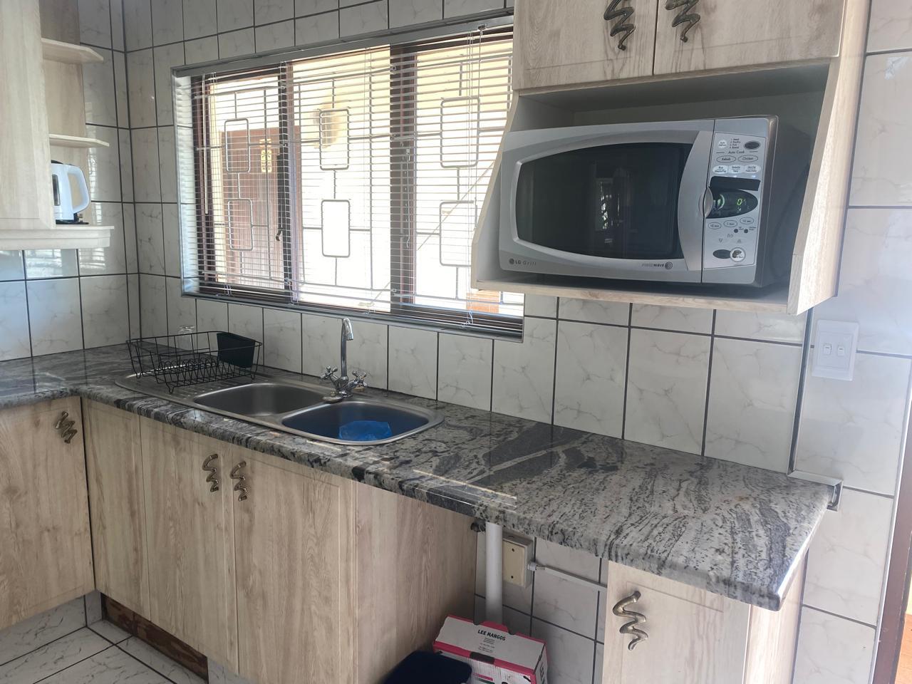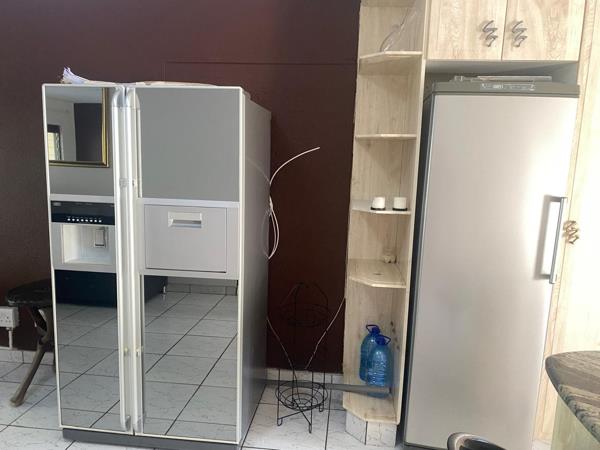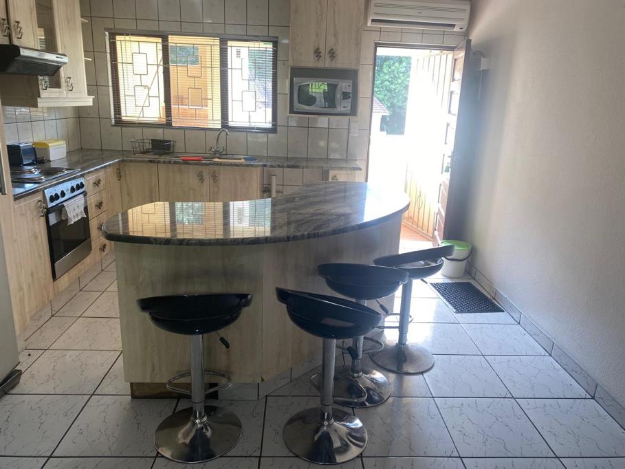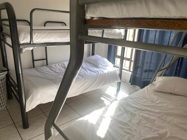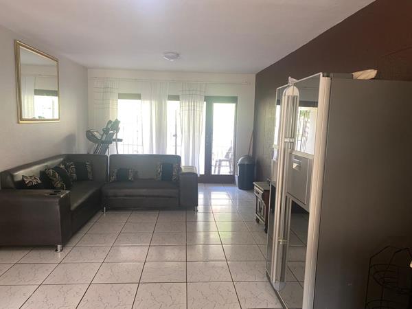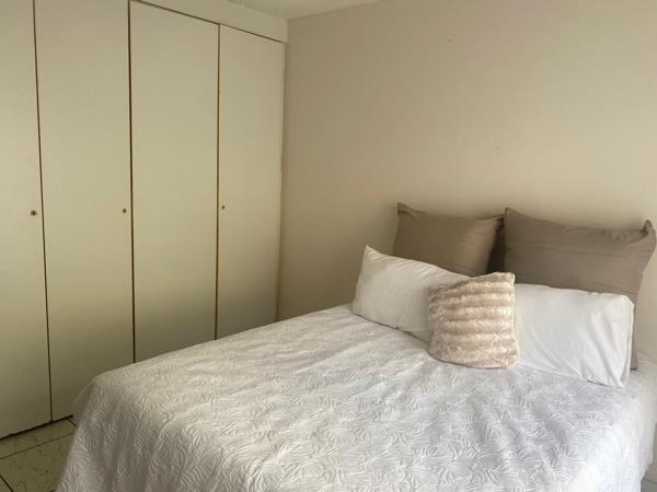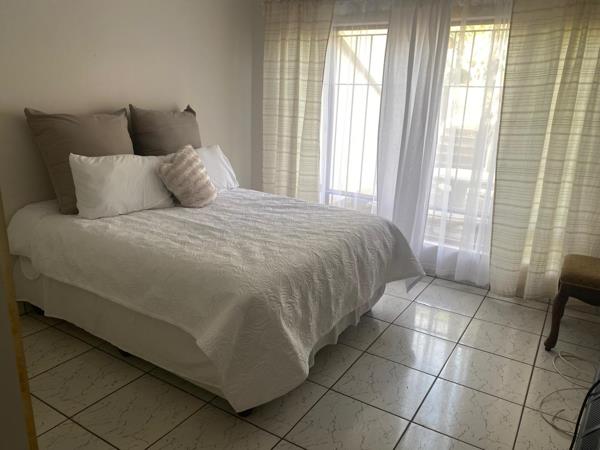 The unit boasts a private outdoor area that overlooks the sparkling blue swimming pool, perfect for relaxing evenings, braais, and social gatherings. The complex is secure, enclosed with electric fencing, ensuring peace of mind for residents.