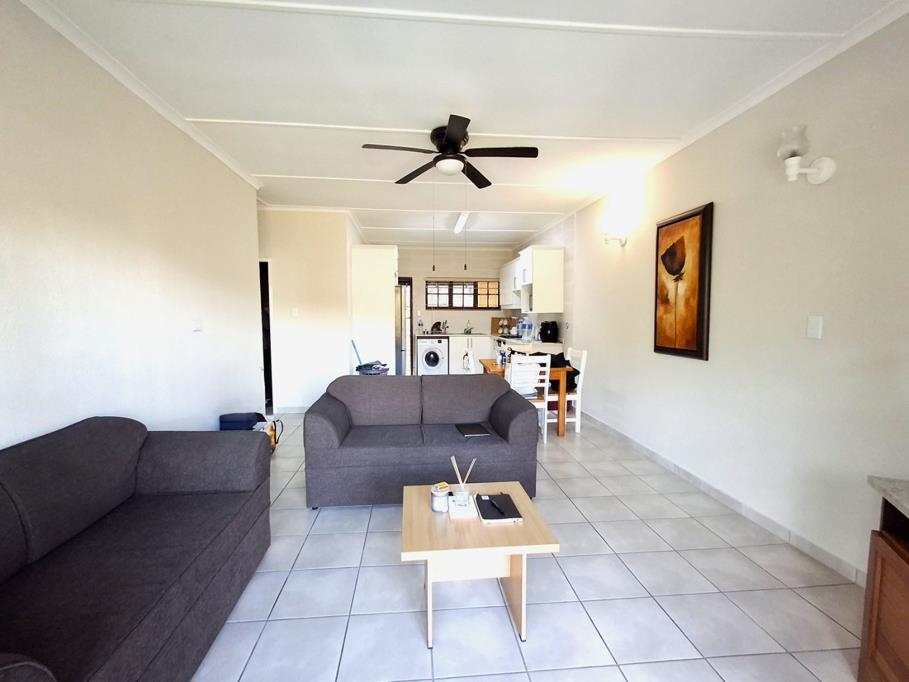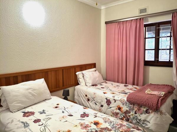 This beautifully renovated top-floor unit features a spacious open-plan kitchen, dining, and lounge area that flows seamlessly onto a balcony overlooking the picturesque Umtamvuna Gorge and the well-kept estate grounds. The entire unit is tiled, and the two generously sized bedrooms offer ample built-in cupboard space. The bathroom, fully tiled to the ceiling, includes a bathtub, shower, basin, and toilet. The unit is being sold partially furnished for added convenience.