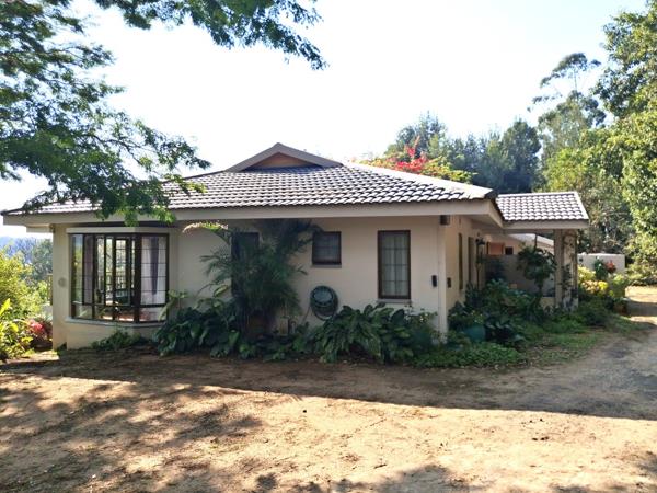 An inviting residence with an expansive undercover balcony overlooking the macadamia orchards, featuring 2 bedrooms, 2 bathrooms, an open-plan lounge, dining, and kitchen, garage, laundry, and staff ablutions.