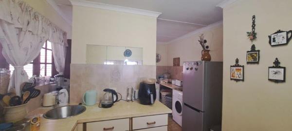 - Solid kitchen with ample cabinetry, separate scullery, and space for all appliances. All the large appliances and small appliances come with the kitchen.