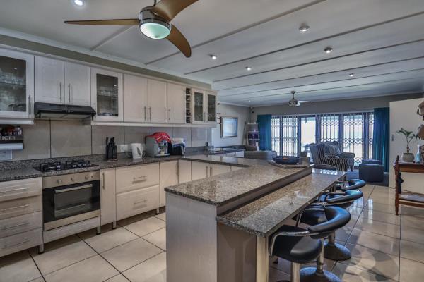 SOLE MANDATE, This impressive 6-bedroom residence, nestles in a prime position in Leisure Bay, offers the perfect blend of luxury and coastal living. The home is a mere 600m to the popular Kidds beach and boasts uninterrupted sea views. As you step inside you will be greeted by the spacious open-plan design. The kitchen is a chefs delight, boasting sleek granite tops and a convenient walk-in pantry, and flows into the first lounge, making it an ideal gathering spot for family and friends.
