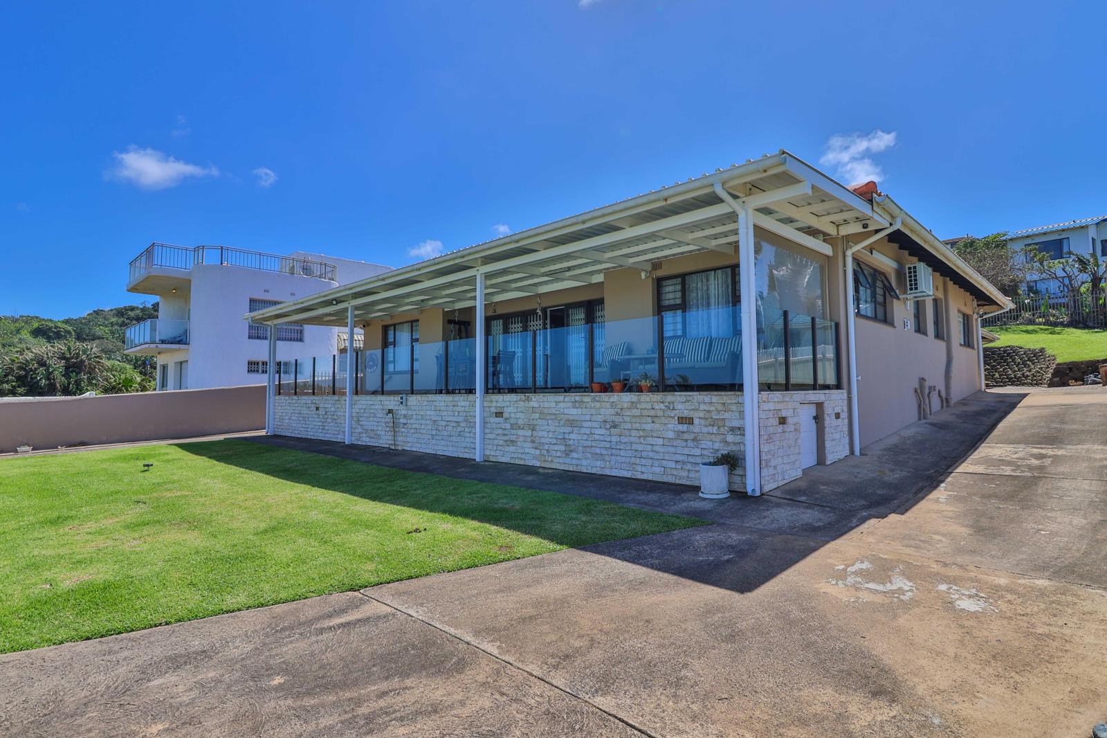 The lounge opens up to a generously sized covered patio where you can enjoy the breathtaking, uninterrupted views of the ocean. This beautiful home features 5-bedrooms accessible from the first lounge. Three bathrooms with main en suite ensuring that everyone has their own space and privacy. The second lounge is spacious and ideal for entertaining, and leads to yet another covered patio, compete with a built-in braai creating an inviting space for outdoor dining and relaxing.