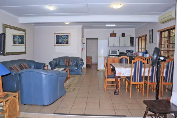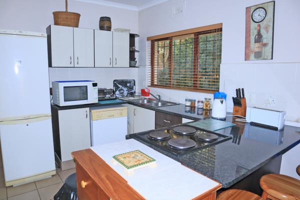 The main house is a delightful haven, comprising two spacious bedrooms and two inviting lounges, with the flexibility to convert one lounge into a third bedroom if needed. The kitchen overlooks a beautiful swimming pool, a perfect backdrop for sunny afternoons, and a lovely braai area and kids'' jungle gym that enhance outdoor entertainment and family fun.