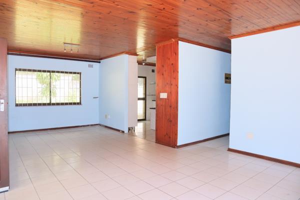 Step inside to find well-appointed living spaces featuring light blue walls and durable tiled flooring throughout. The property includes a dedicated lounge and dining room, providing distinct areas for relaxation and entertaining. Unique wooden slat and panel ceilings add character, while large windows and sliding glass doors ensure abundant natural light, creating a bright and airy atmosphere.