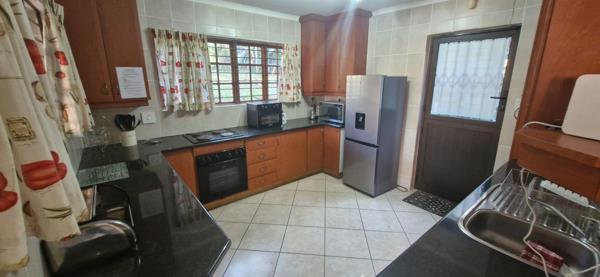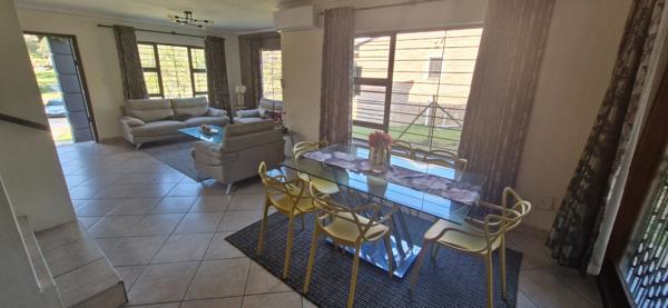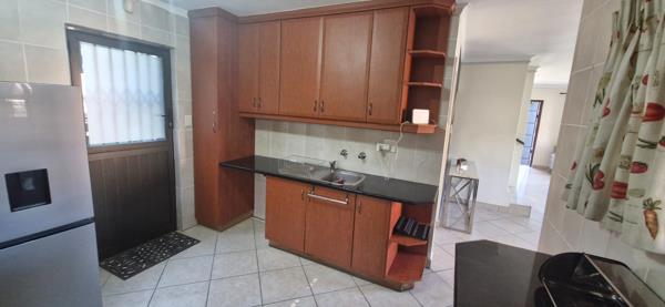 The upstairs area offers three bedrooms, two bathrooms, main en-suite and open plan living area leading onto an open balcony and braai area.