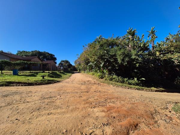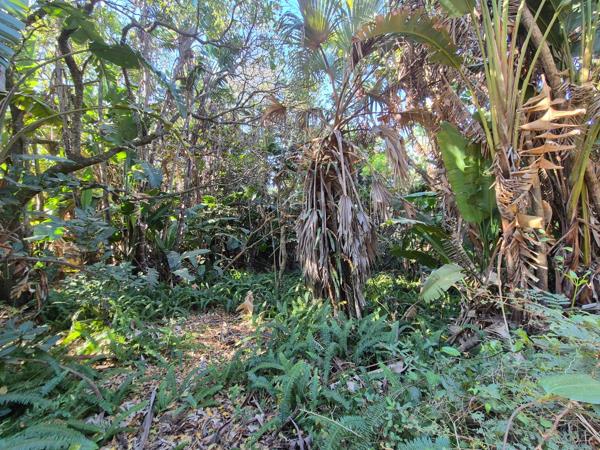 This parcel of land for sale on the beautiful South Coast of KwaZulu-Natal is nestled on a quiet street in the tranquil village of Leisure Bay. The plot, measuring 1013 square meters, remains in its natural state, untouched and never cleared, with lush growth including Strelitzia Nicolai and various other trees and shrubs. As a corner stand, the property benefits from increased privacy, more design flexibility for building, and often better light and airflow compared to non-corner plots. Additionally, there is already an electrical point on the property, simplifying the development process. Access to the property is via a gravel road, adding to its rustic charm.