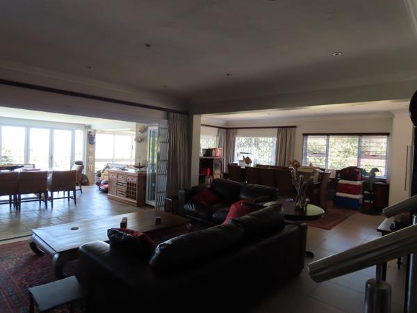 The lower level consists of open plan living areas, big patio with stunning Indian ocean views, leading into a heated splash pool, ideal for the entertainer, with a built-in braai, eating space and a sitting area to enjoy the view. This home offers four bedrooms, three bathrooms, two en-suite. Separate study area, large living areas and a separate staff room with bathroom. Modern kitchen, neat courtyard for laundry.