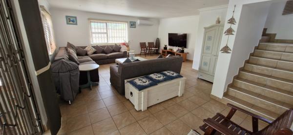 This light and airy property maximizes light and has spacious reception areas, well designed kitchen, and ample storage. Large open-plan lounge/living /dining and kitchen area seamlessly leading to an outside patio and sun deck, perfect for entertaining with built-in braai. Three spacious bedrooms stretches over the entire ground level with two bathrooms of which one is Ensuite. The upstairs area offers two bedrooms and one bathroom.