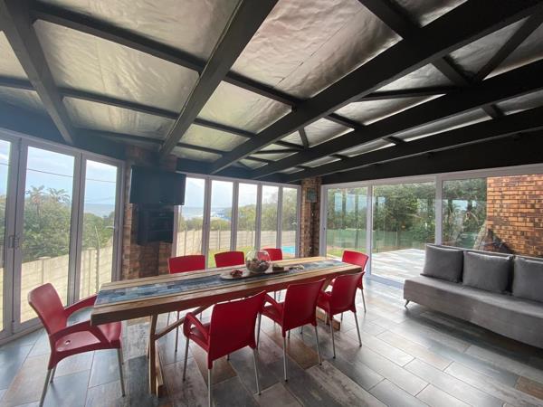 This welcoming family home is set in a beautiful 1194m garden and offers expansive open plan living areas with magnificent ocean and sea views! This home offers four bedrooms, four bathrooms, two en-suite and a guest facility. Separate study area, large living areas and a separate staff room/studio with bathroom.